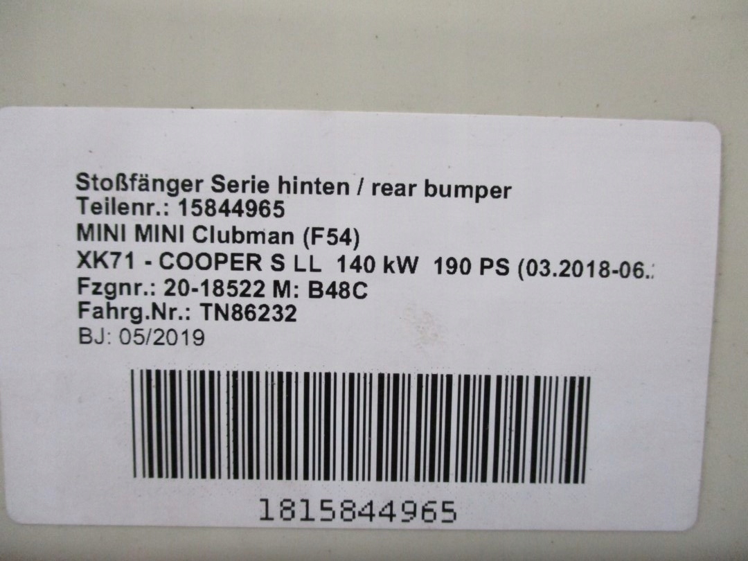 Каталожный номер детали: Zderzak, MINI, F54, 4X, PDC, S, TYŁ, TYLNY