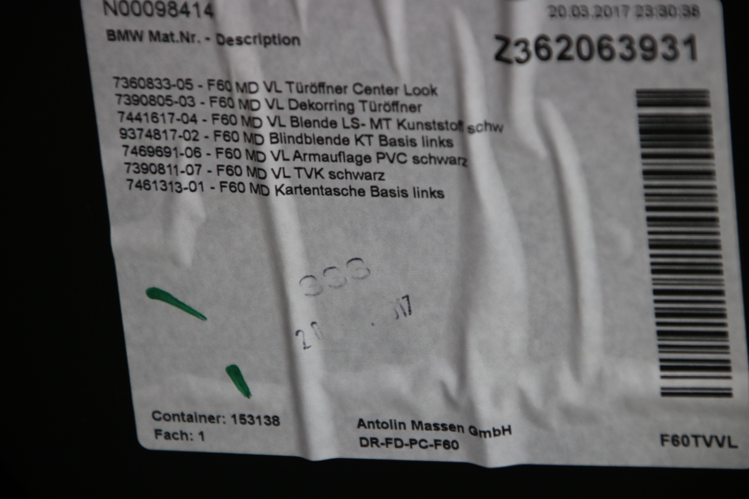 Mini f60 обшивка обивка дверь левая левый перед