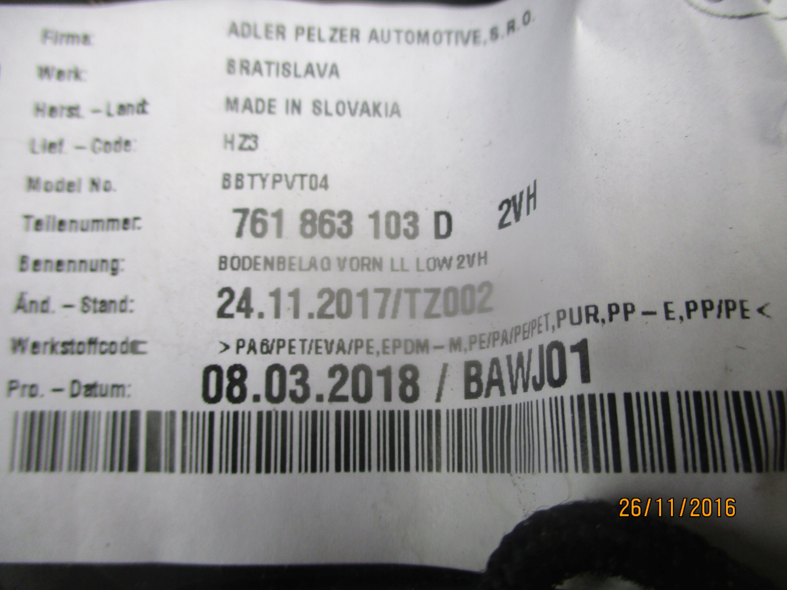 | Каталожный номер детали: | 761863103D |
