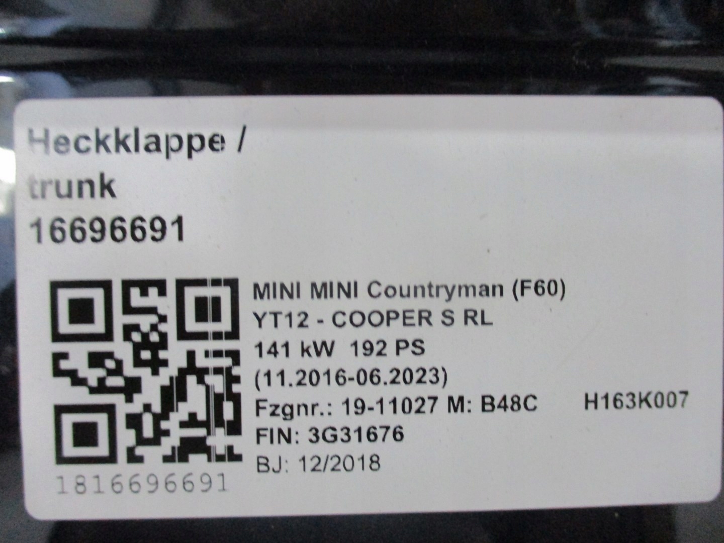 Крышка багажника задняя mini f60 countryman 18r
