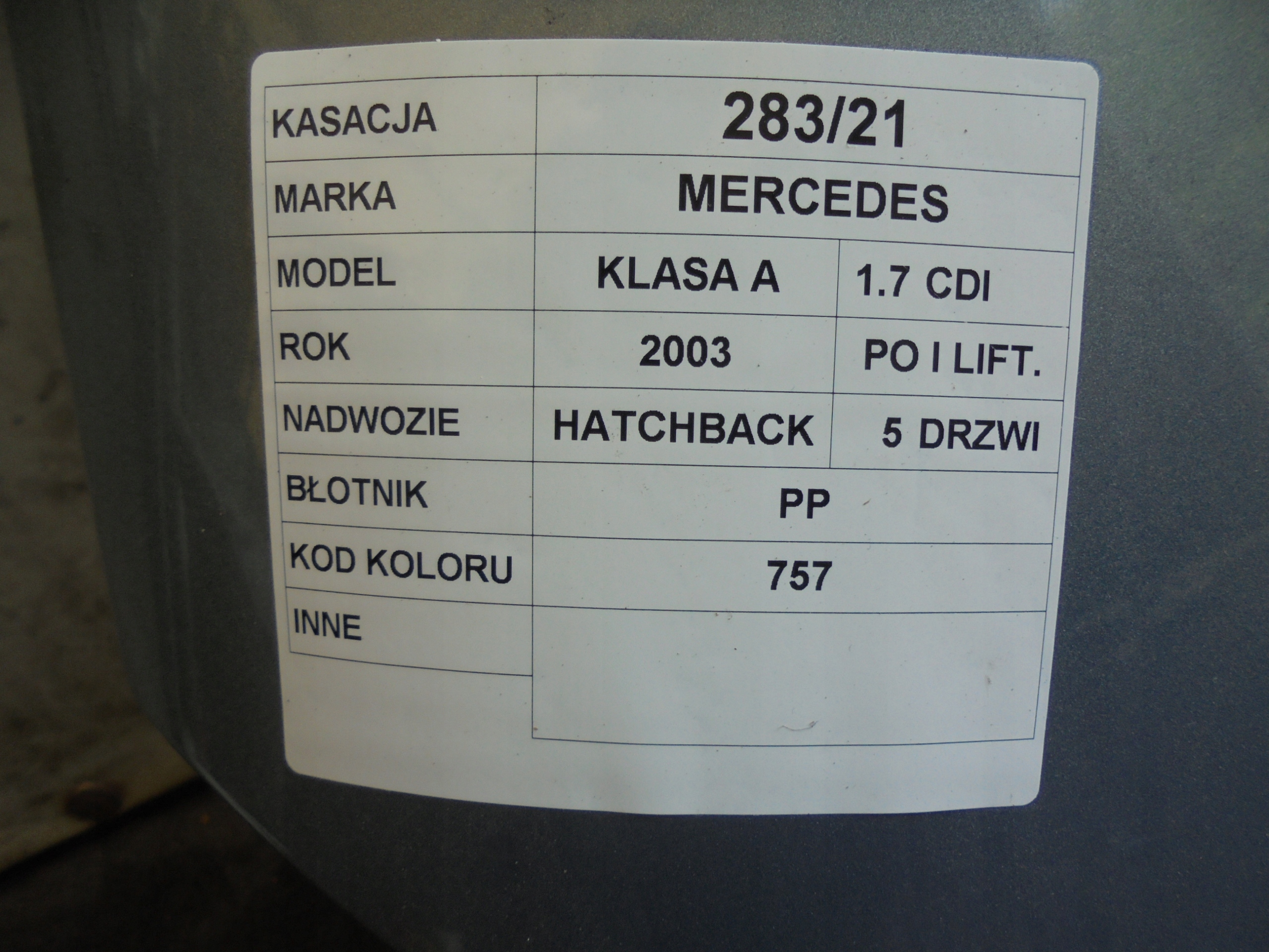 Крыло pp mercedes w168 1,7cdi lift lak.757