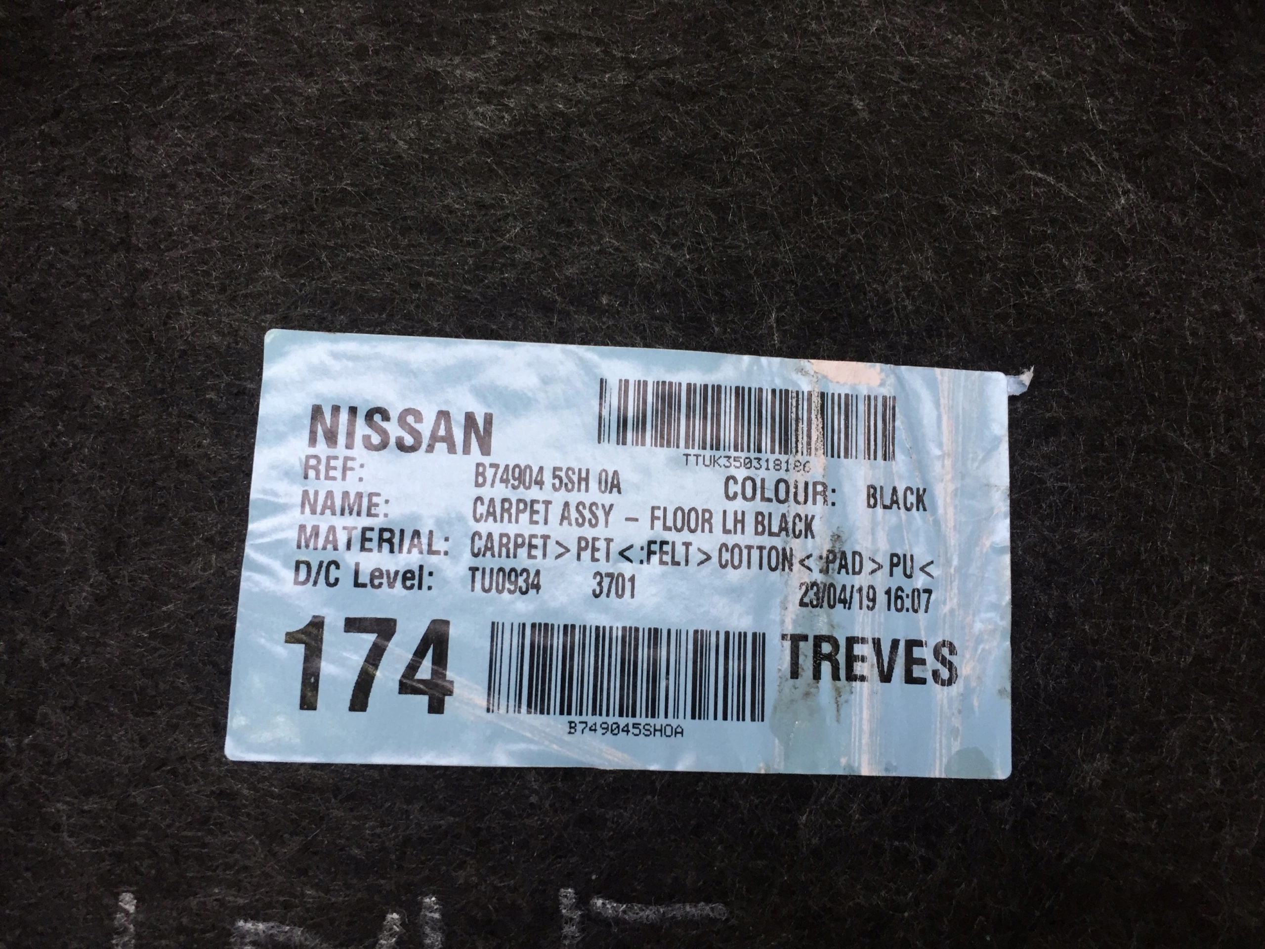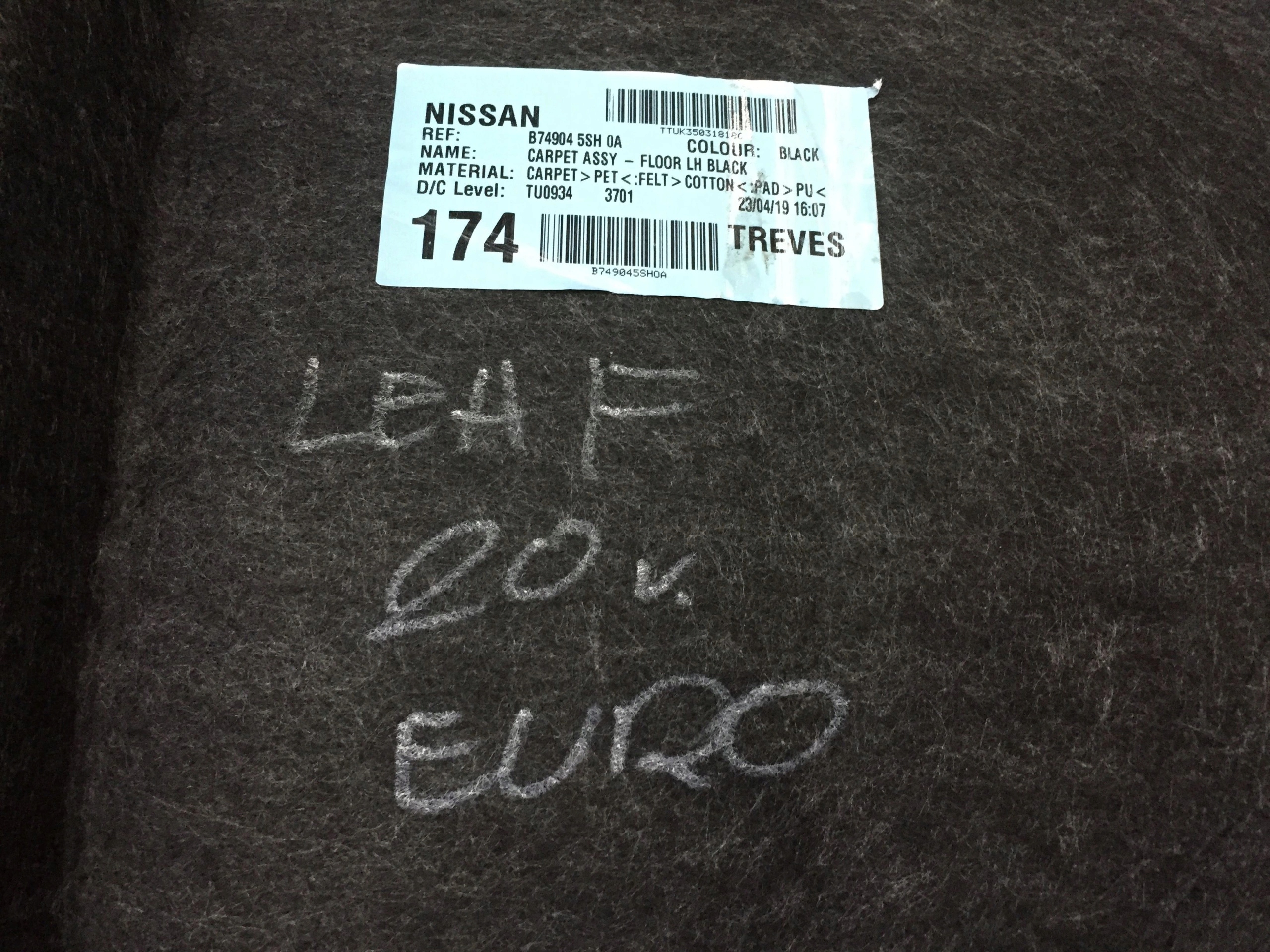 Nissan leaf ii 2 2020 коврик обшивка салона