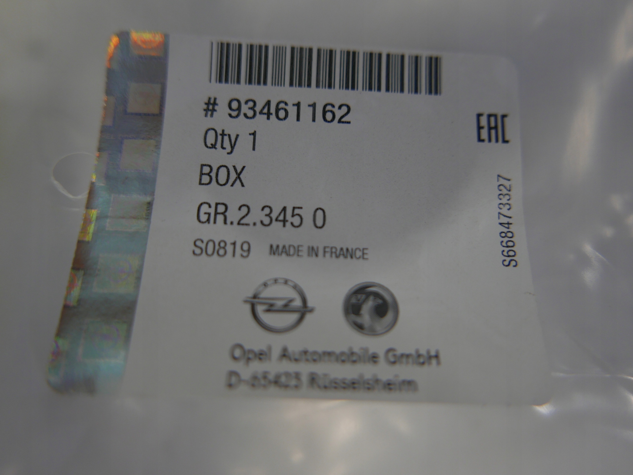 | Каталожный номер детали: | 93461162 |