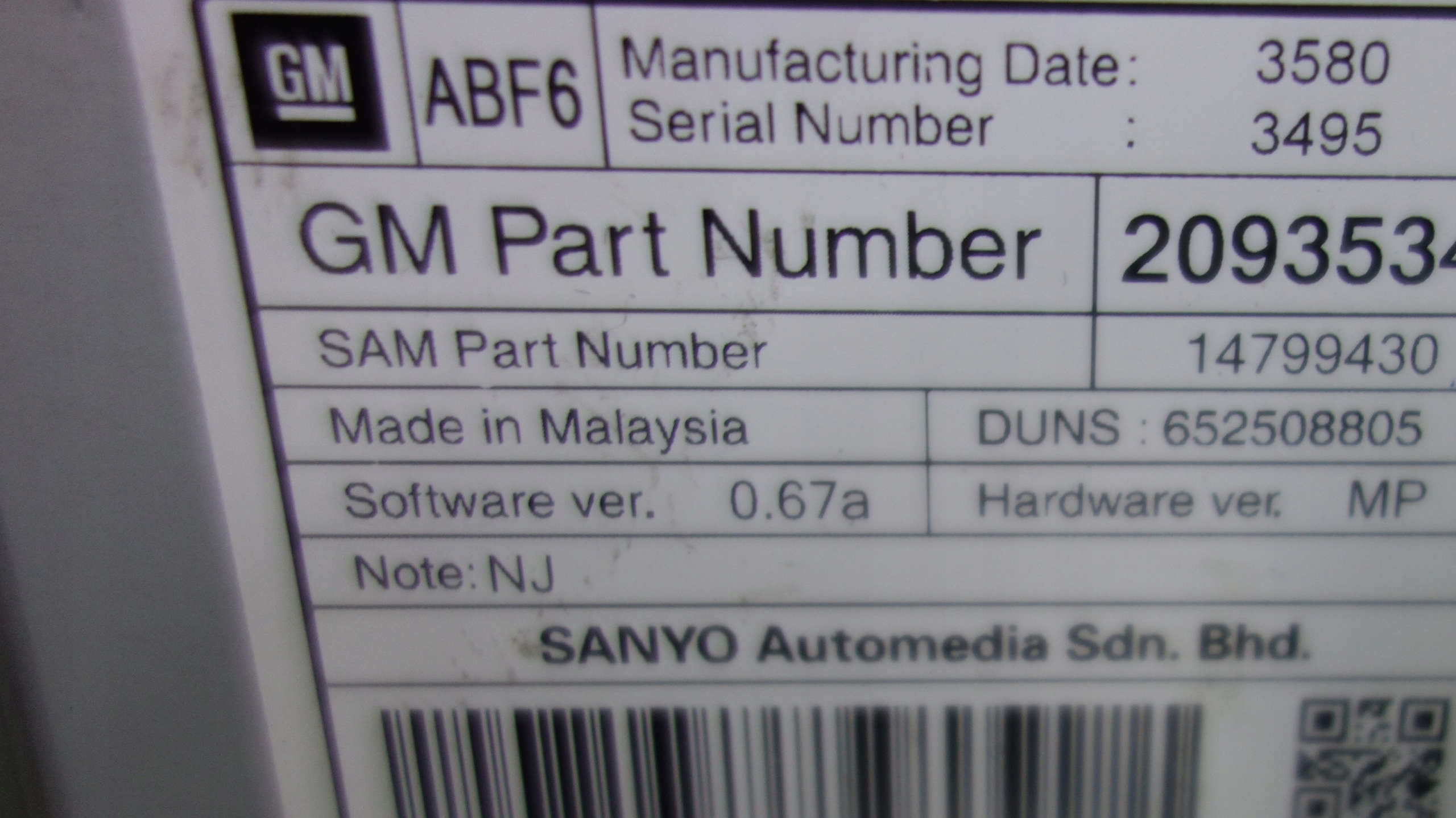 | Каталожный номер детали: | 20935346 |