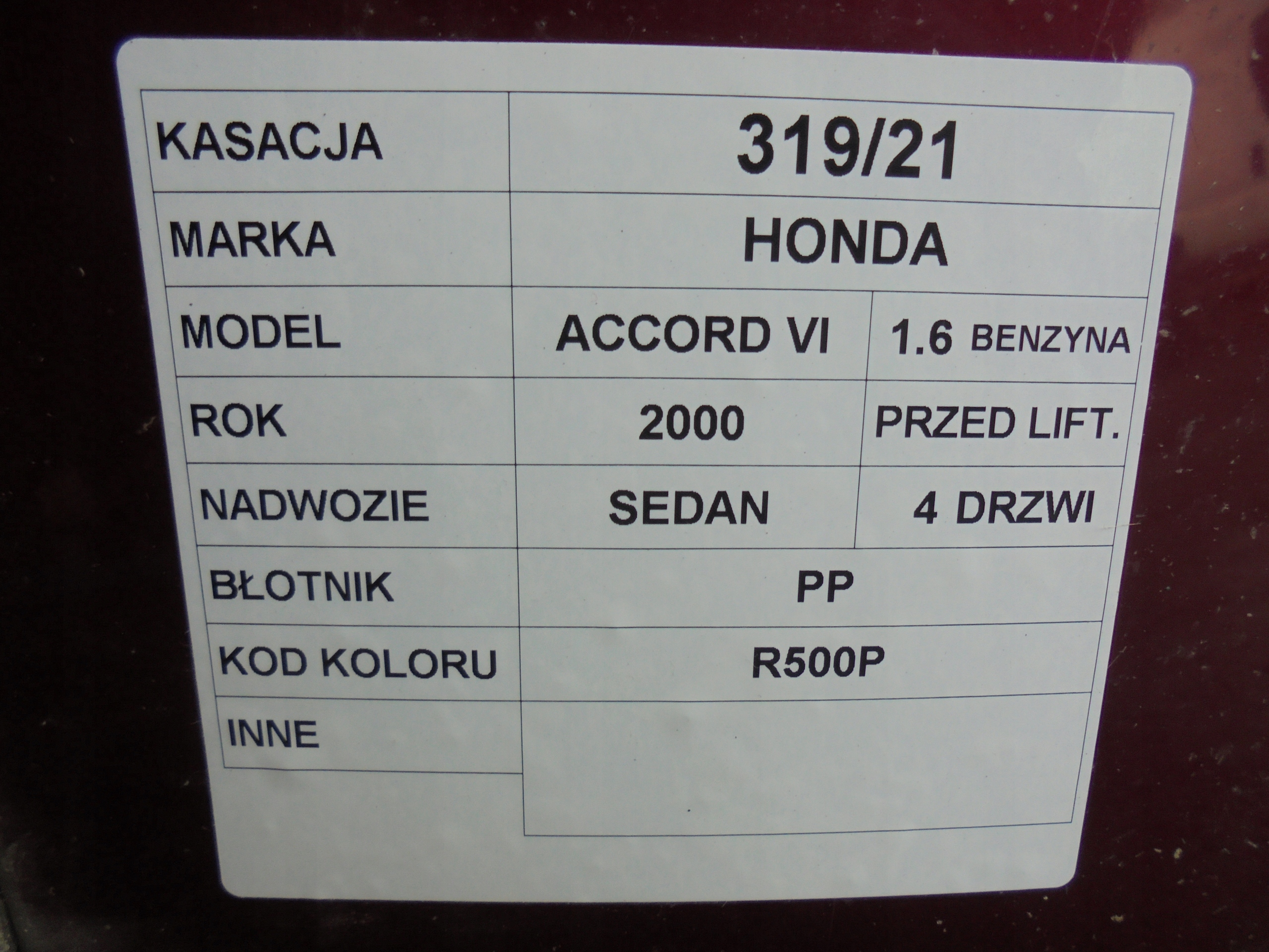 Крыло pp honda accord vi r500p
