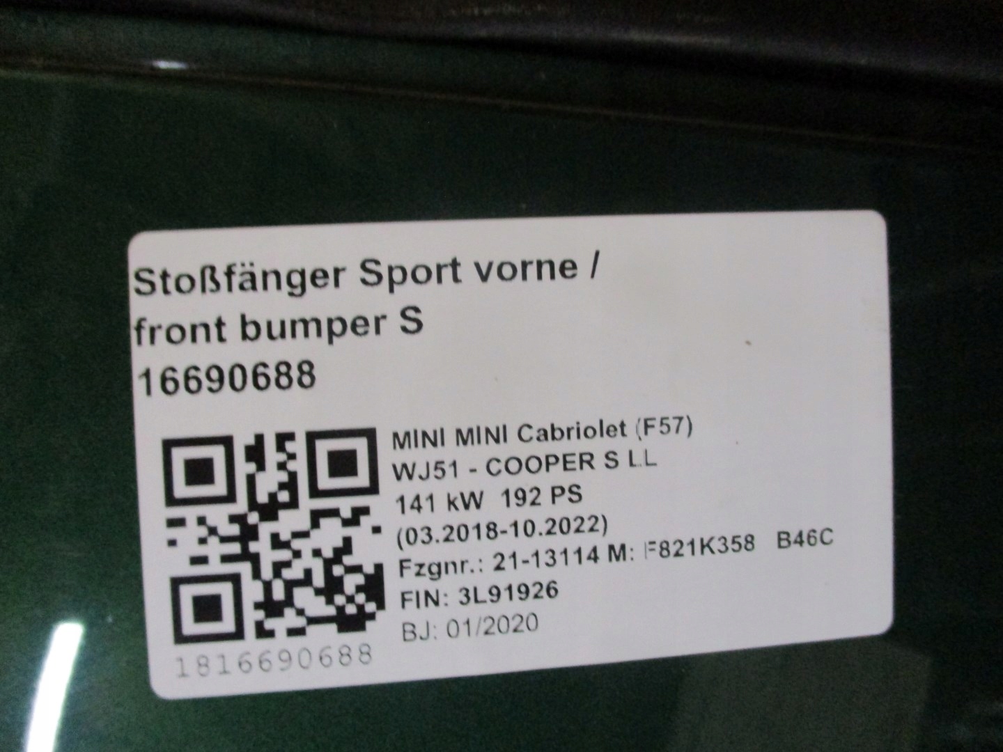 Есть ли гарантия на Бампер mini f57 противотуманная фара led перед передний?