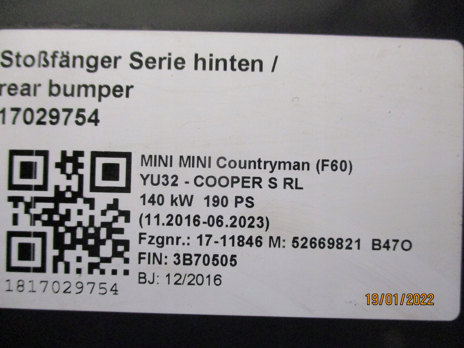 Есть ли гарантия на Бампер mini countryman f60 s 4x pdc задняя задний?