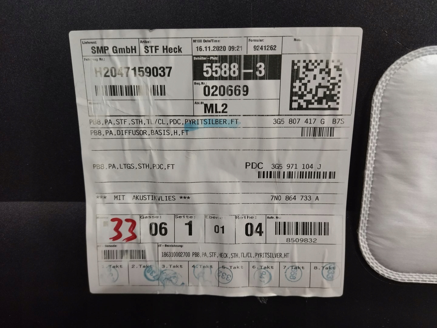 | Производитель запчасти: | volkswagen оригинальный номер |