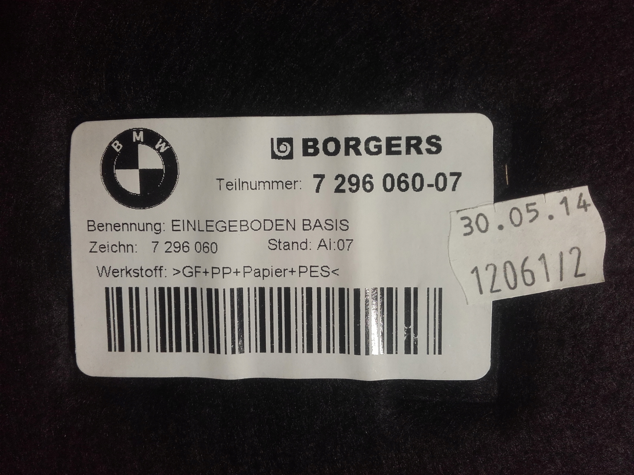 Bmw 2 f22 коврик обшивка багажника 7296060