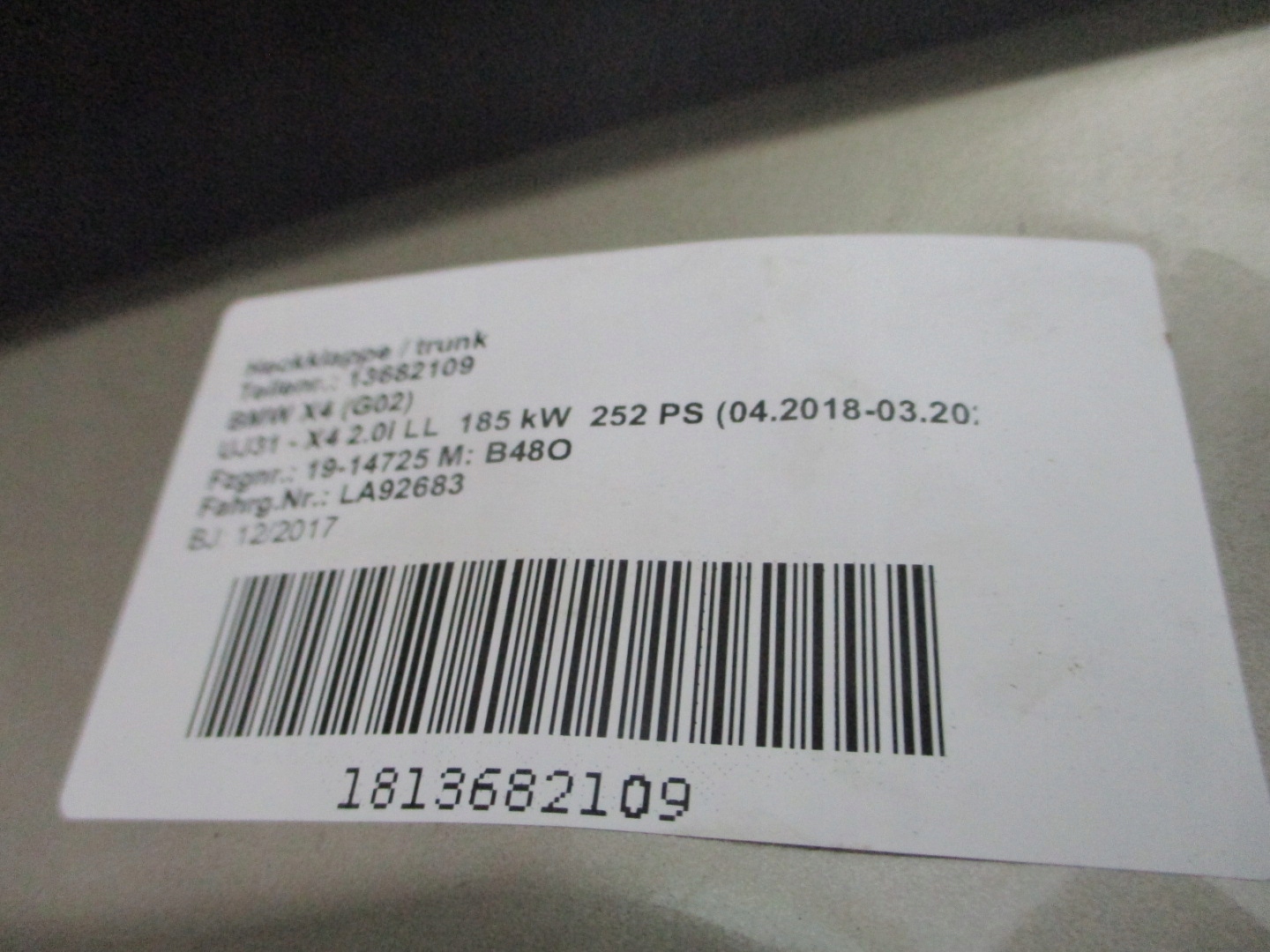 | Каталожный номер детали: | Klapa tylna BMW X4 G02 |