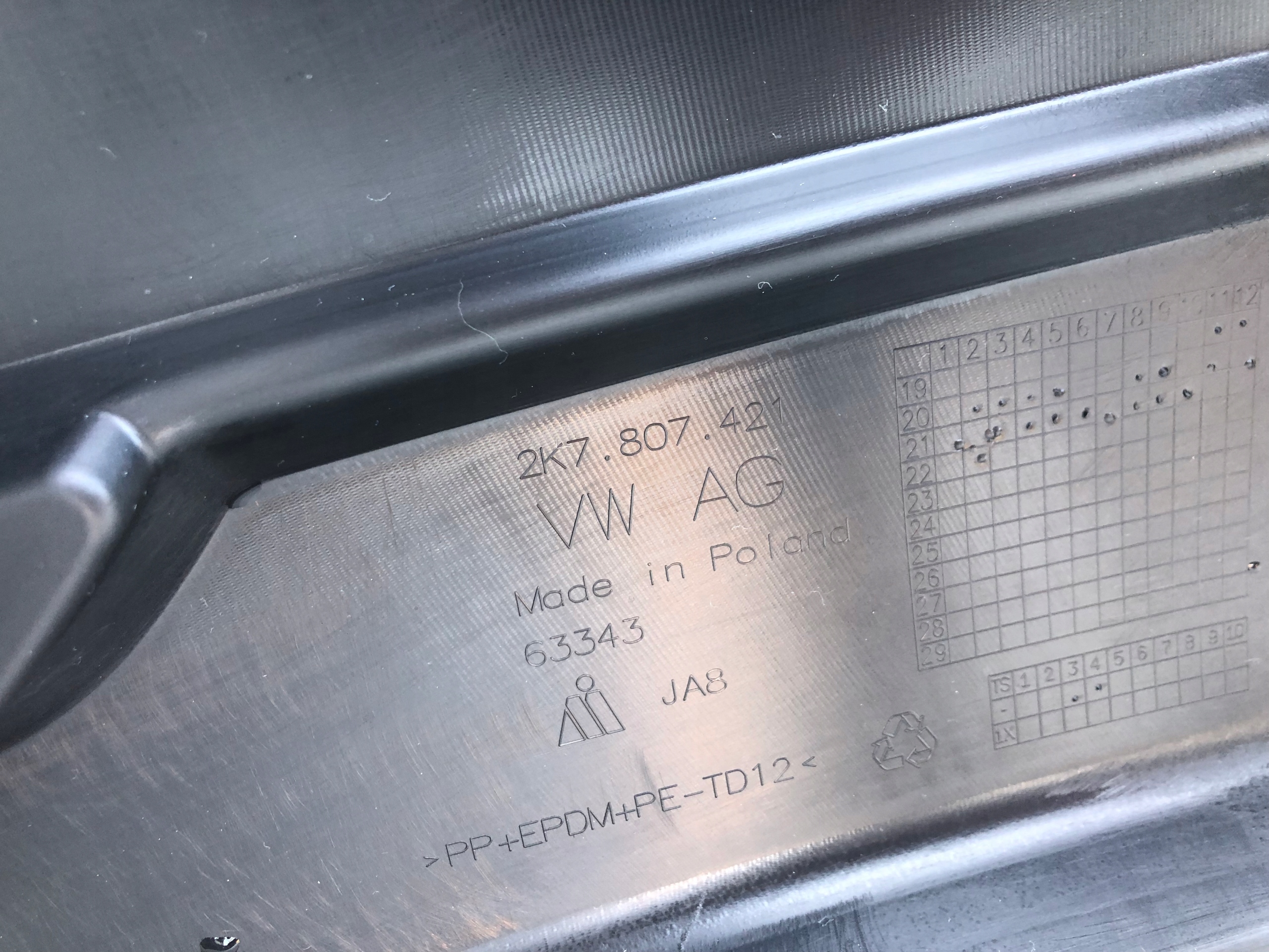 Volkswagen оригинальный номер 2k7807421 бампер
