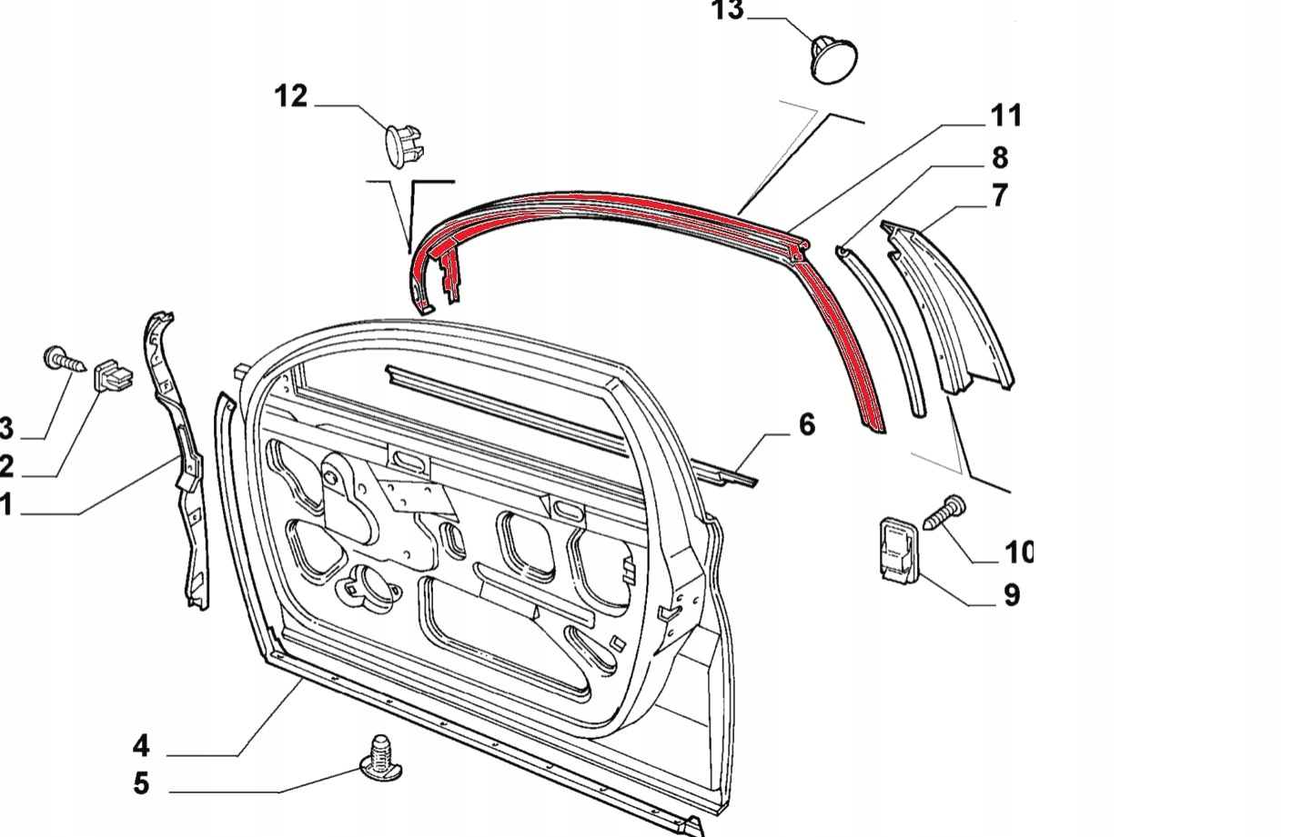 Alfa romeo 166 прокладка obrysu стекло перед левая