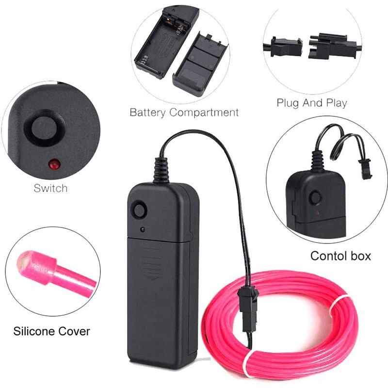 3m волоконно-оптический кабель el wire led лента ремень аккумулятор aa