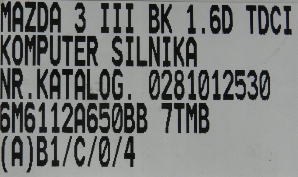 Бортовой компьютер блок управления mazda 3 iii bk 1.6d 0281012530
