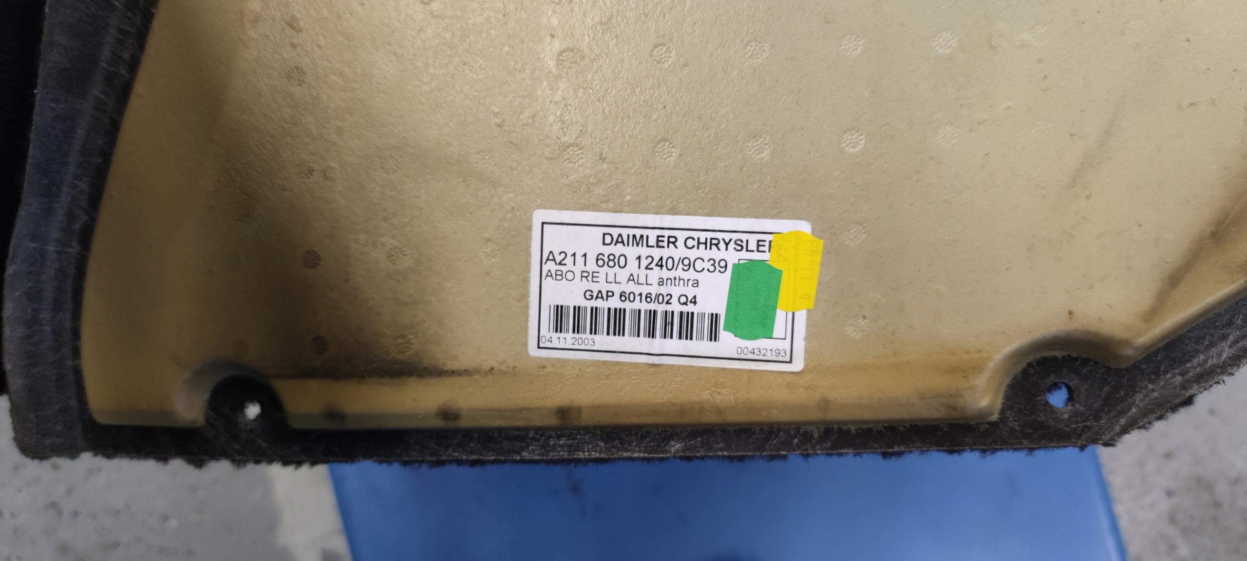 | Каталожный номер детали: | A2116801240, 2116801240, 9C39, WYKŁADZINA, DYWAN, PRAWY, PRZEDNI, 4MATIC |