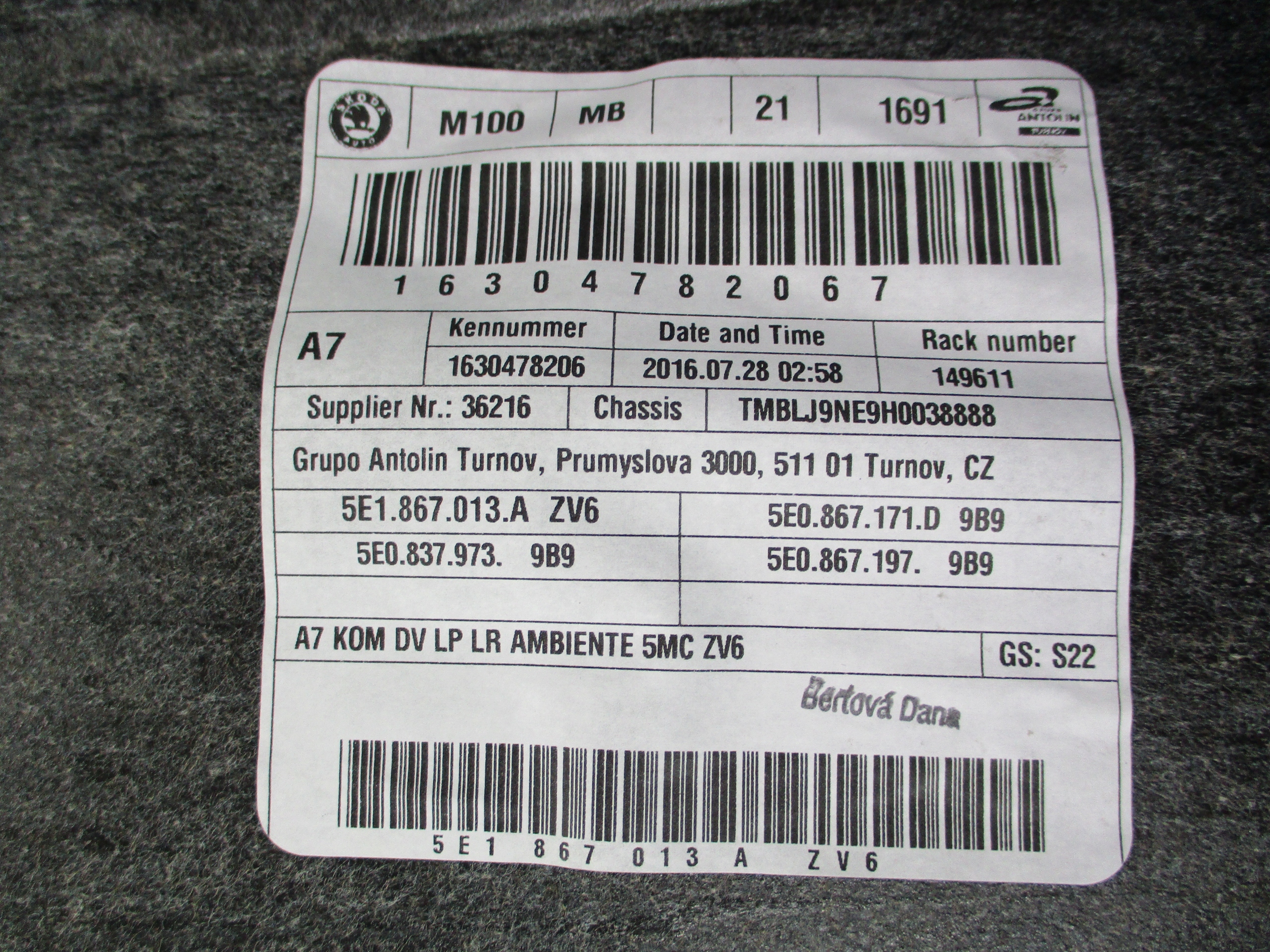 Производитель запчасти: skoda оригинальный номер