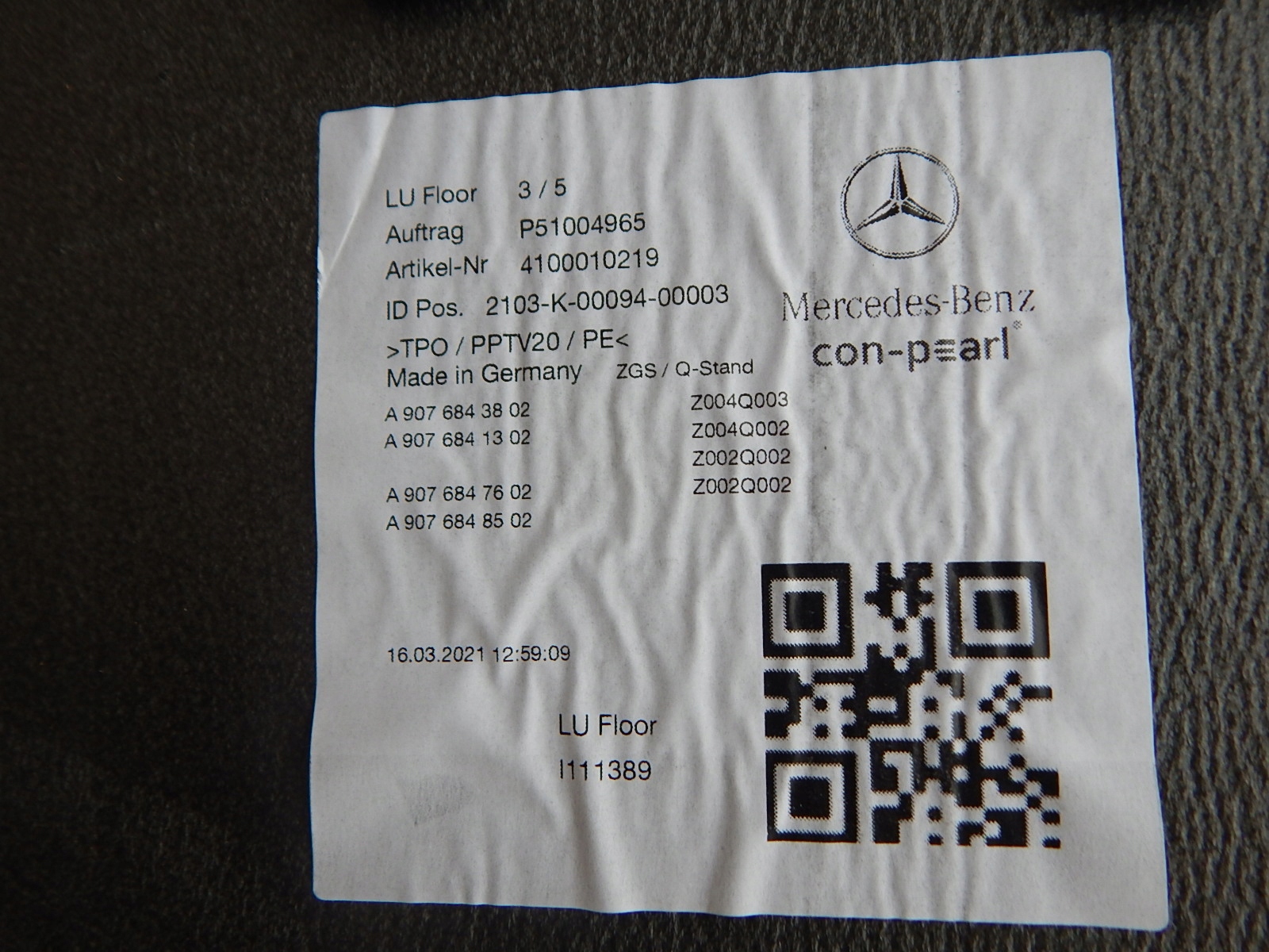 | Каталожный номер детали: | MERCEDES, SPRINTER, 906, 907, 910, podłoga, płyta, wykładzina, zabudowa, PAKI, /4A9076843802 |