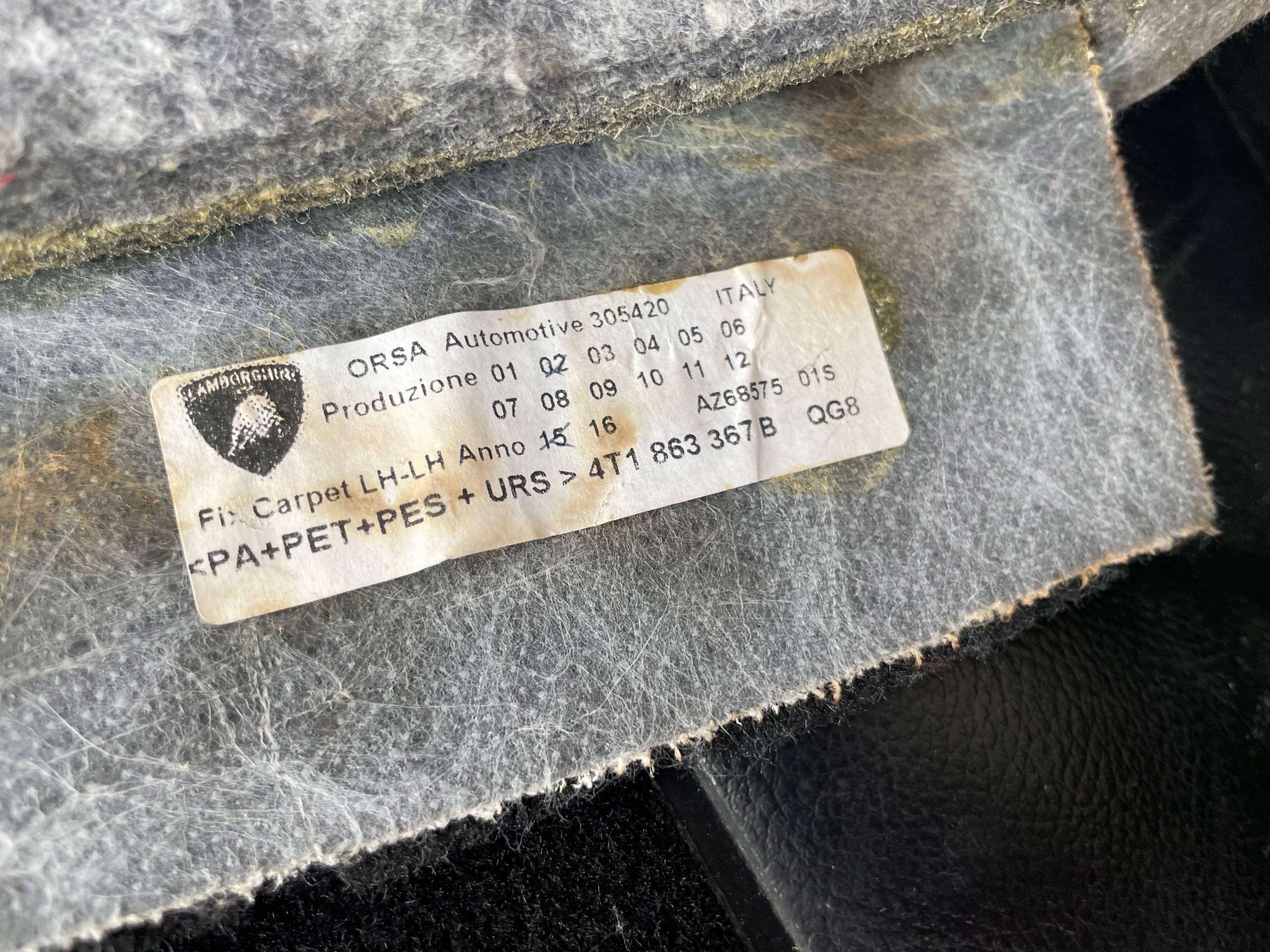 Lamborghini huracan коврик водителя обшивка lhd