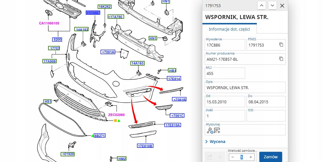 Как проверить совместимость Направляющая бампера перед левый ford s-max mk1 2010-15 с моим авто?