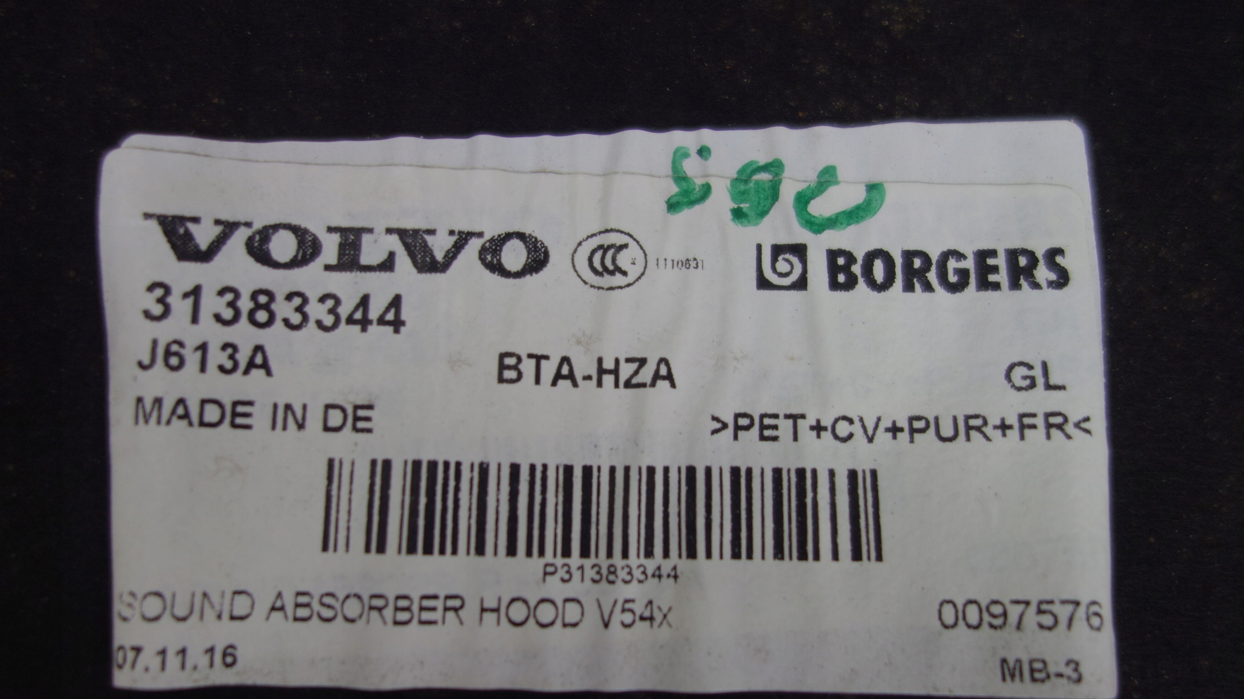 Volvo s90 v90 шумоизоляция капот 31383344