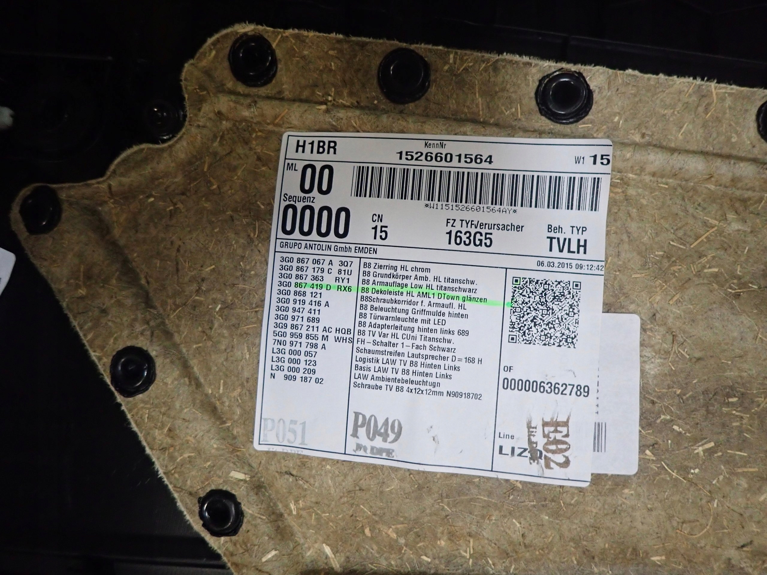 Каталожный номер детали: QBG PASSAT B8 TAPICERKA BOCZEK DRZWI LEWY TYL