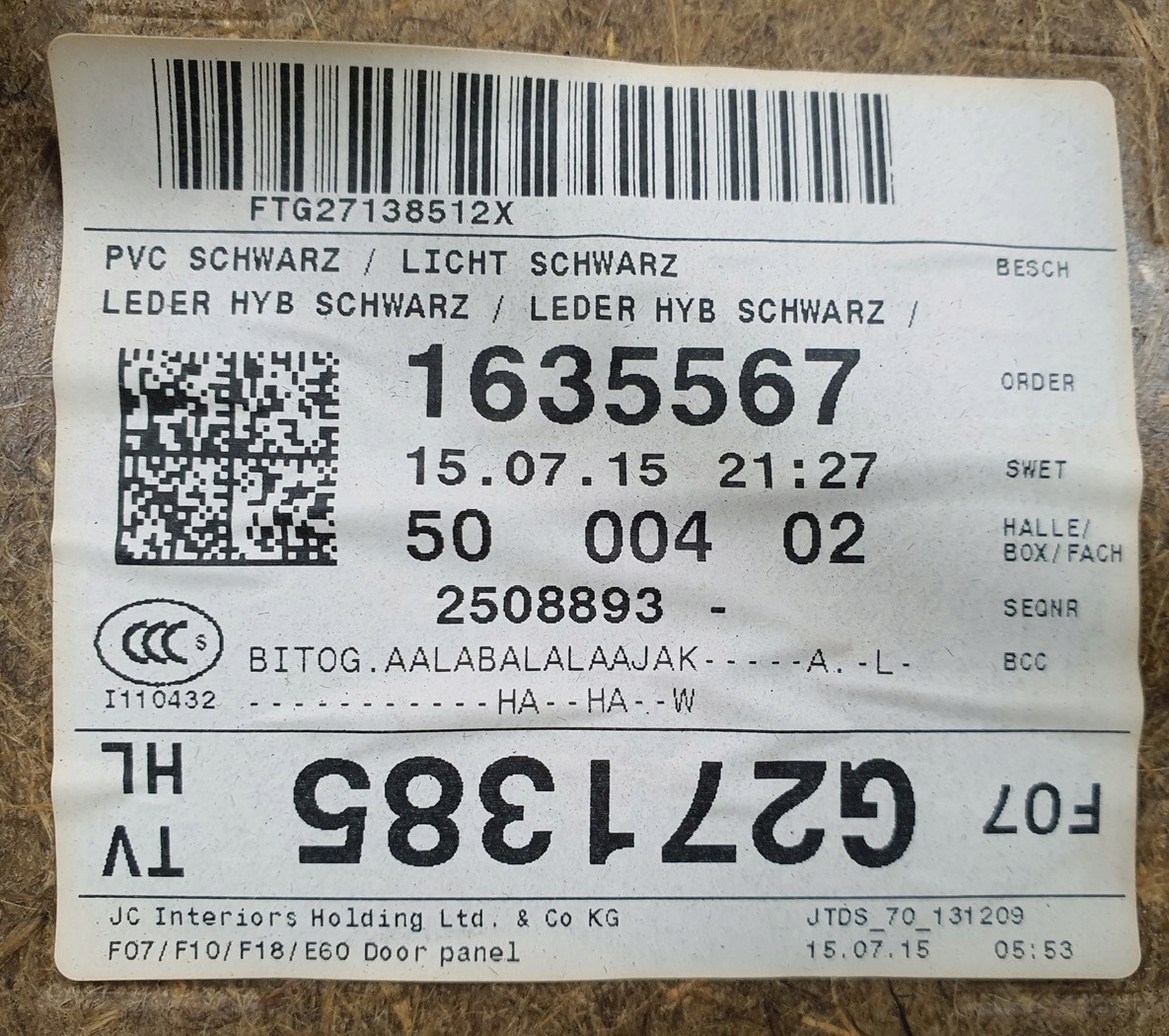 Как проверить совместимость Обивка обшивка дверь левый задняя bmw 5 f07 hb с моим авто?