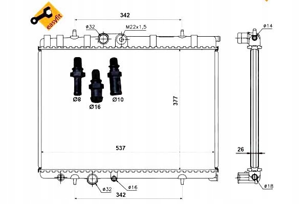 Радиатор воды 628952 nissens citroen mitsubishi
