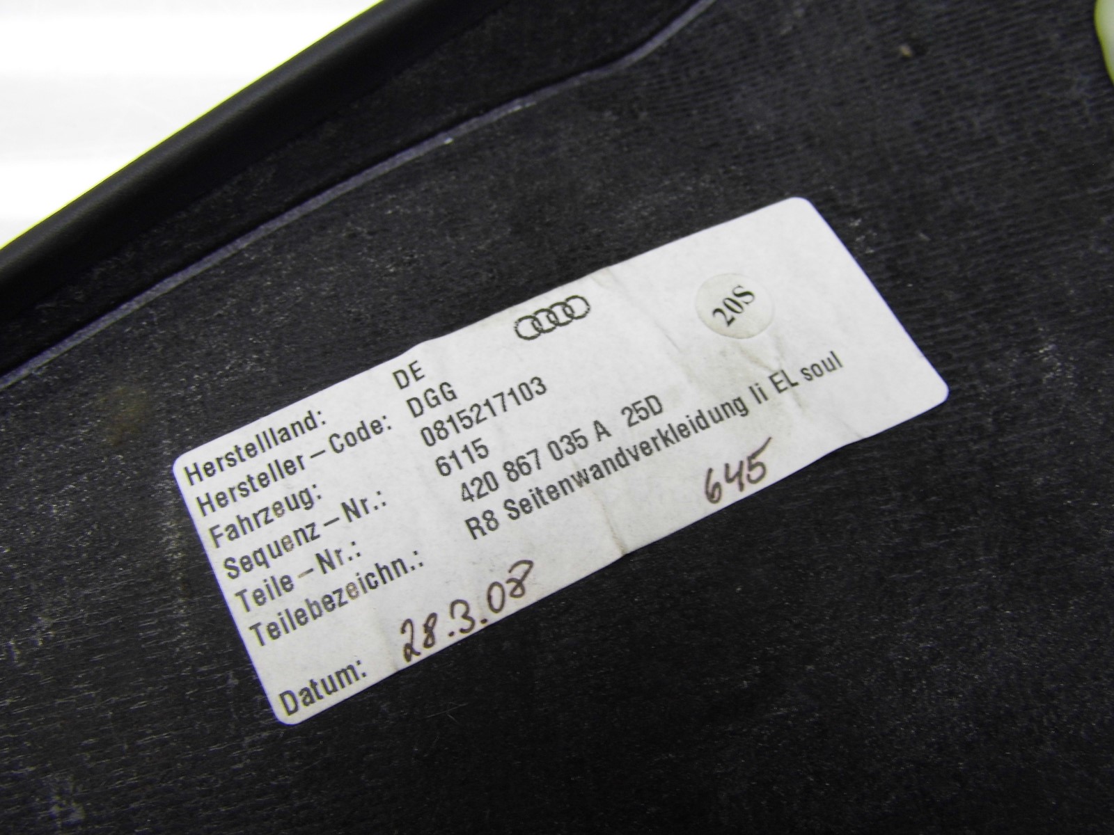 Обшивка обивка левая задняя audi r8 420 420867035a
