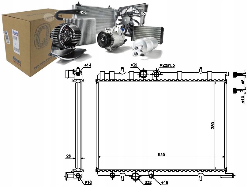 Радиатор berlingo, c4,xsara /543x385x19/ partner 02-
