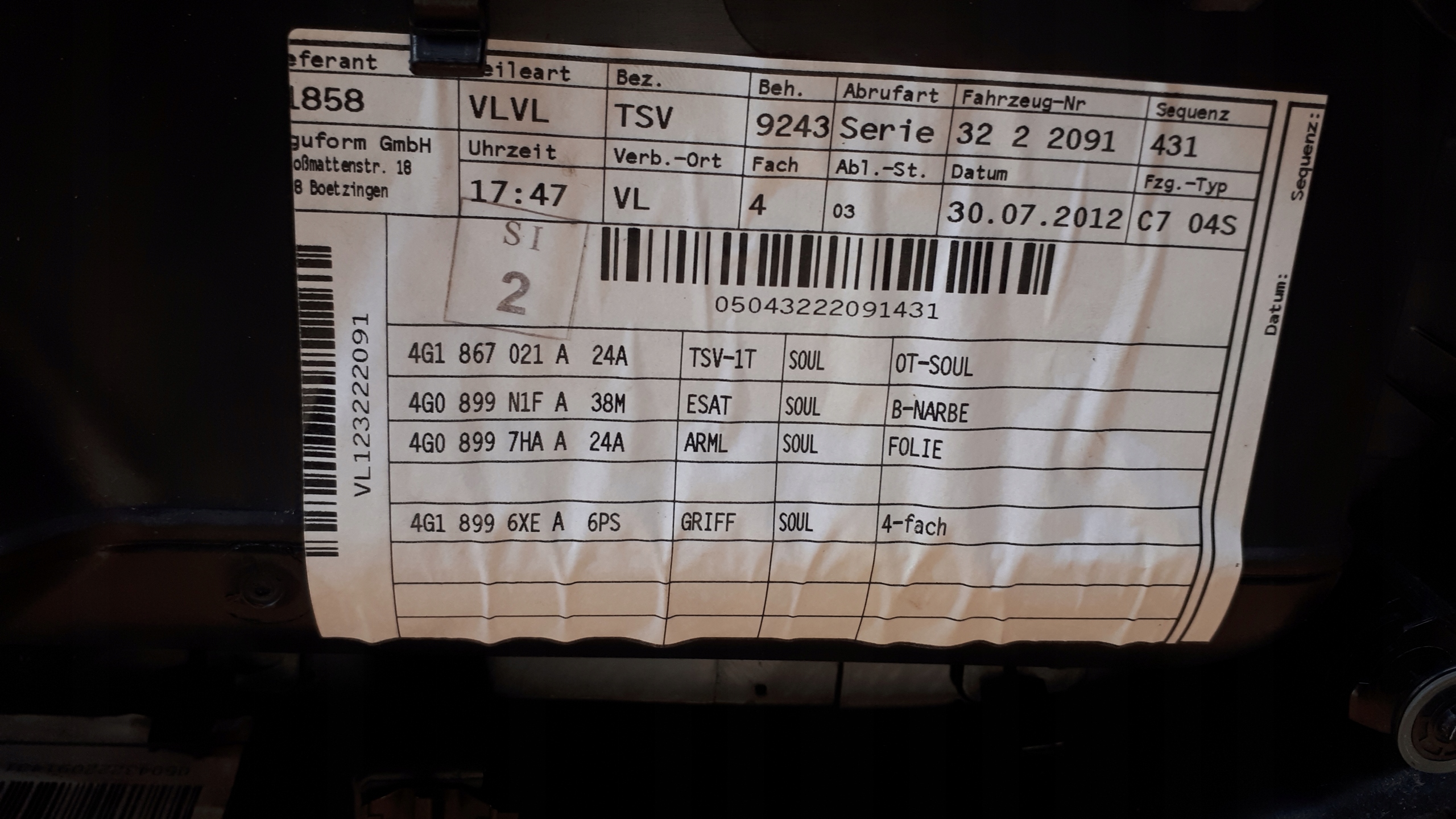 | Каталожный номер детали: | 4G1867021 |