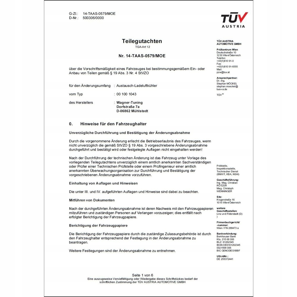 Есть ли гарантия на Интеркулер wagner тюнинг evo 1 bmw 1er f20?