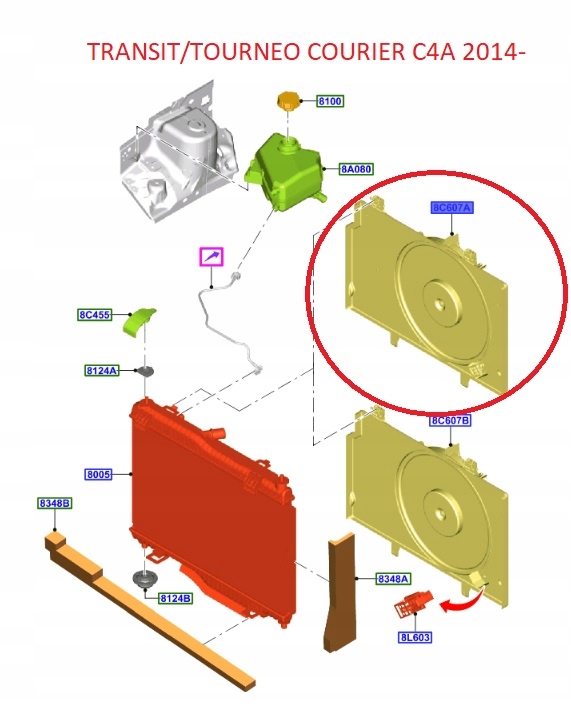 Вентилятор радиатора transit /tourneo courier 14- 2225636 _ et76-8c607-fe