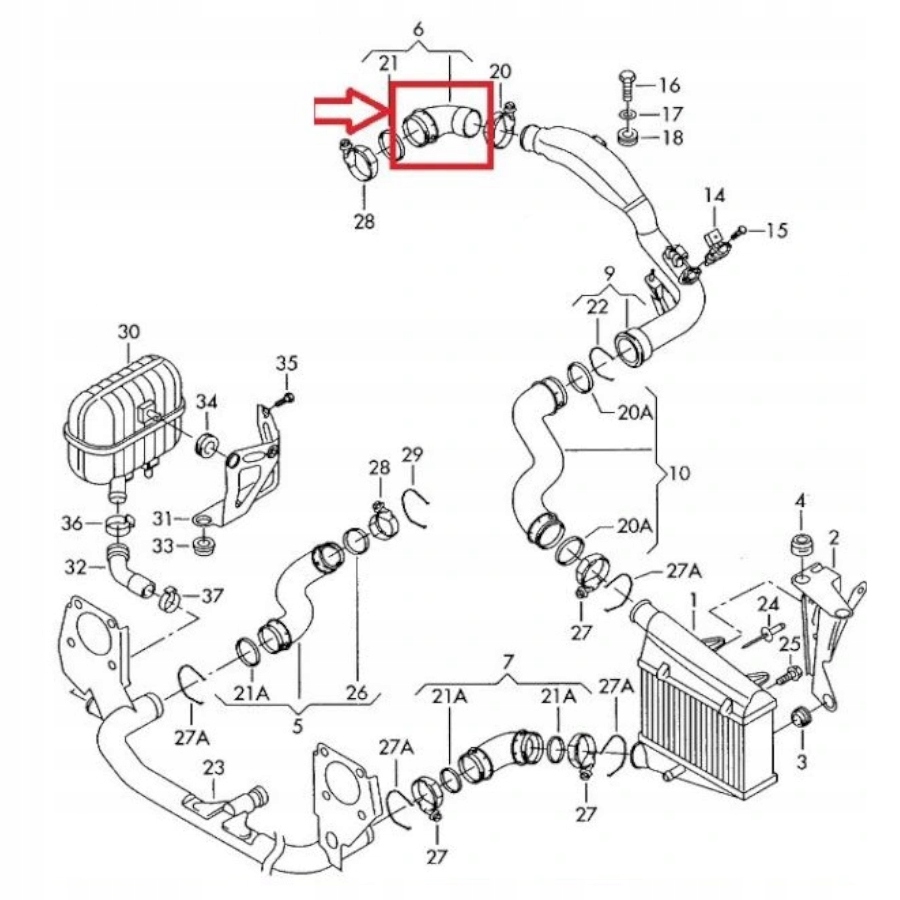 Шланг радиатора воздуха интеркулер труба пабтрубок