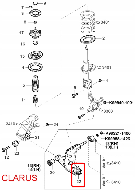 Шаровая опора рычага перед kia clarus 96-00 0g03034550b