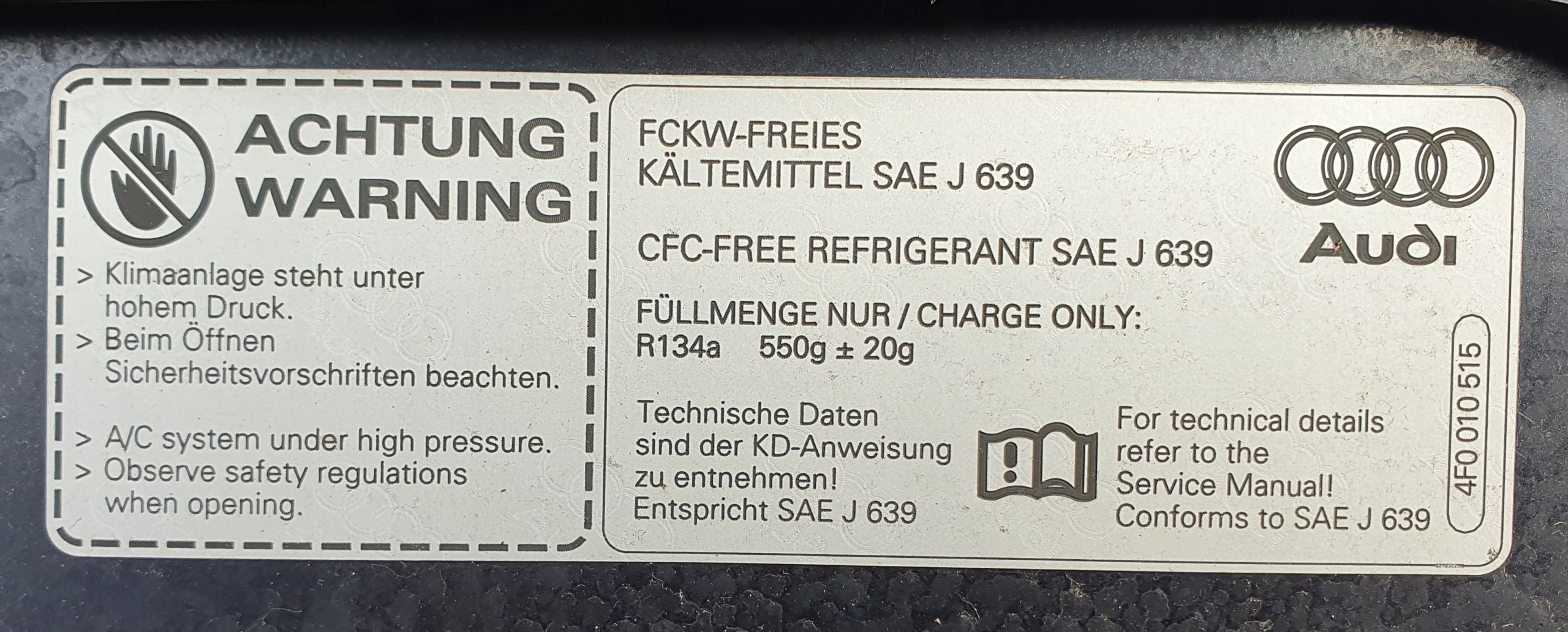 | Оригинальный каталожный номер: | AUDI 4F0 010 515 |