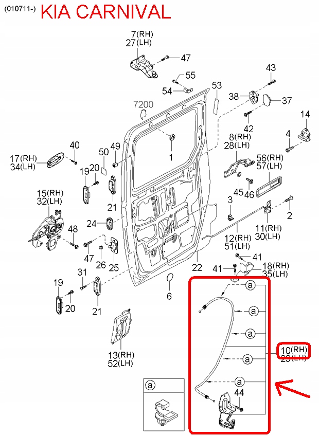 Ролик дверь раздвижных правых kia carnival 01-05