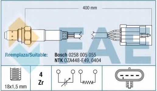 Каталожные номера заменителей: FAE77158, 77158, 855345, 0258 005 055, 0404, 09118698, 25177596, ES20135-12B1, OZA448-E49, OZH 148, 8435050618660, BOS0258005055, BOS0258005732, DELES20135-12B1, DLO0855345, NGKOZA448-E49, NGKOZA660-EE26, VEM40-76-0009, DENDOX-1598, BOS0258986712