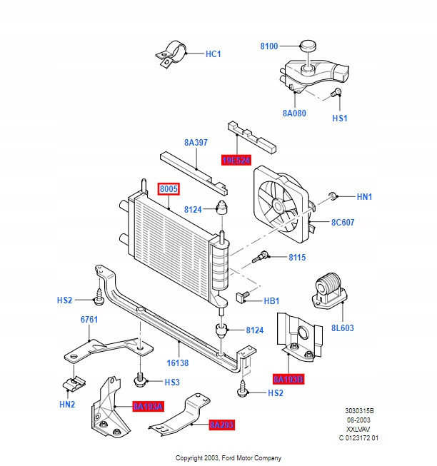Ford оригинальный номер 97kb-8005-ca радиатор, система охлаждение двигателя