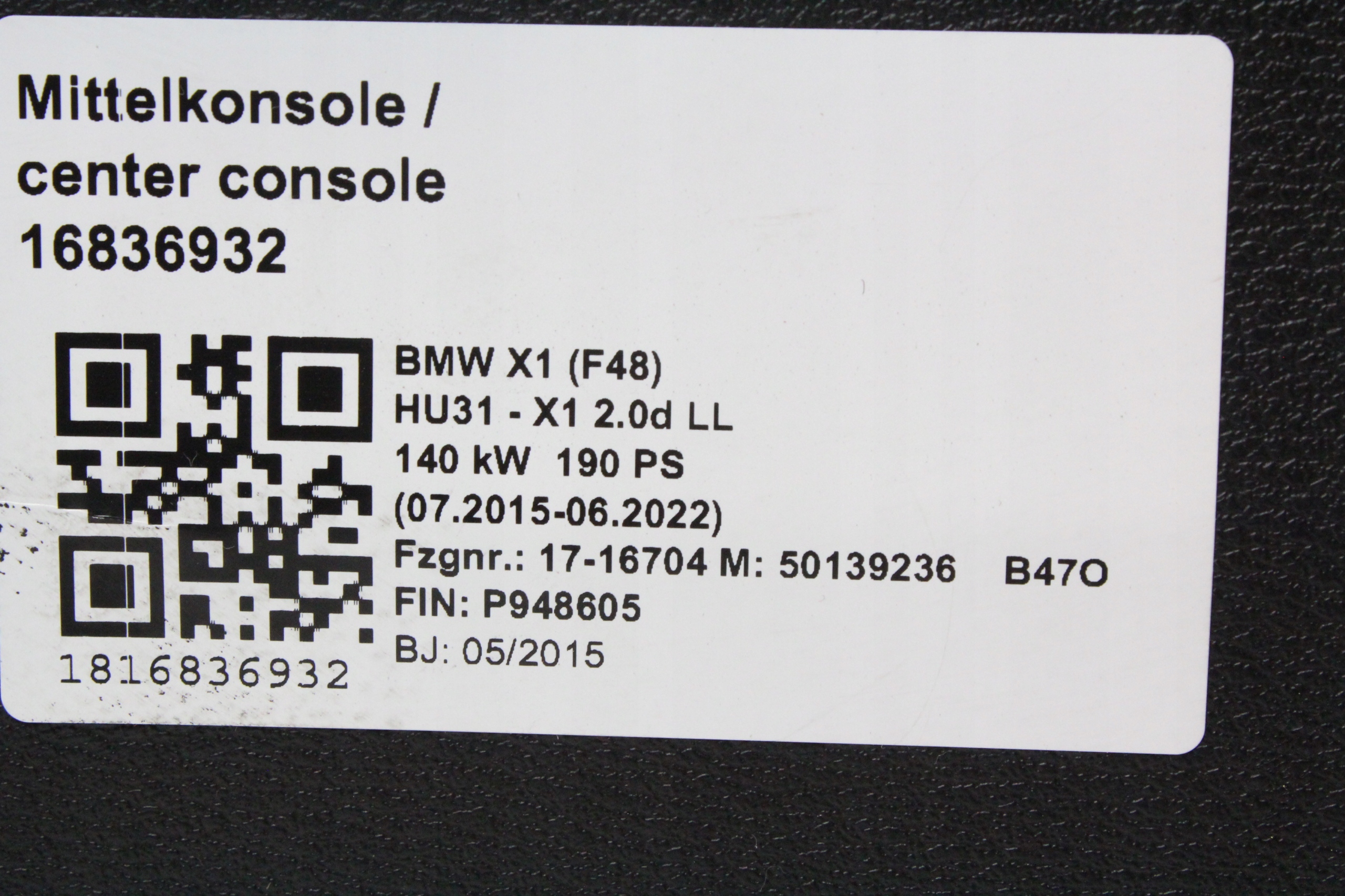 Туннель средний подлокотник bmw f39 x2 f48 x1 hmat