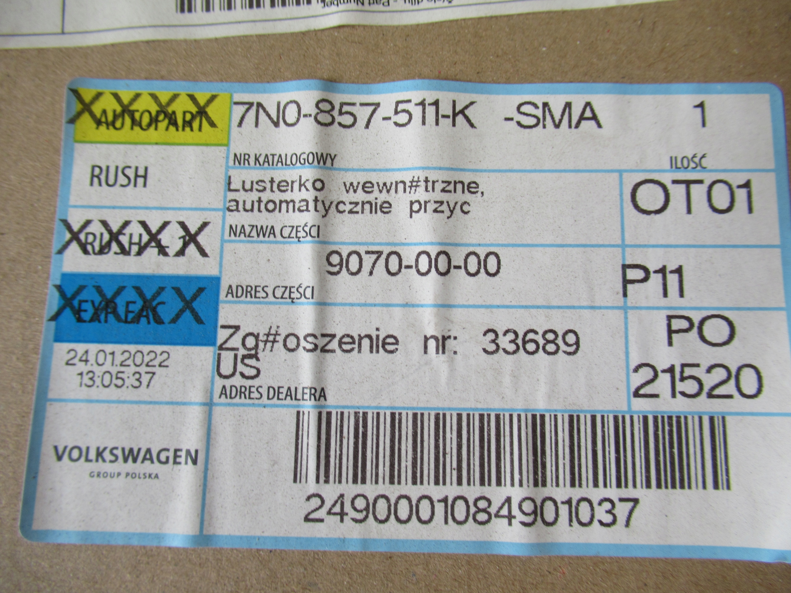 | Каталожный номер детали: | 7N0857511K |