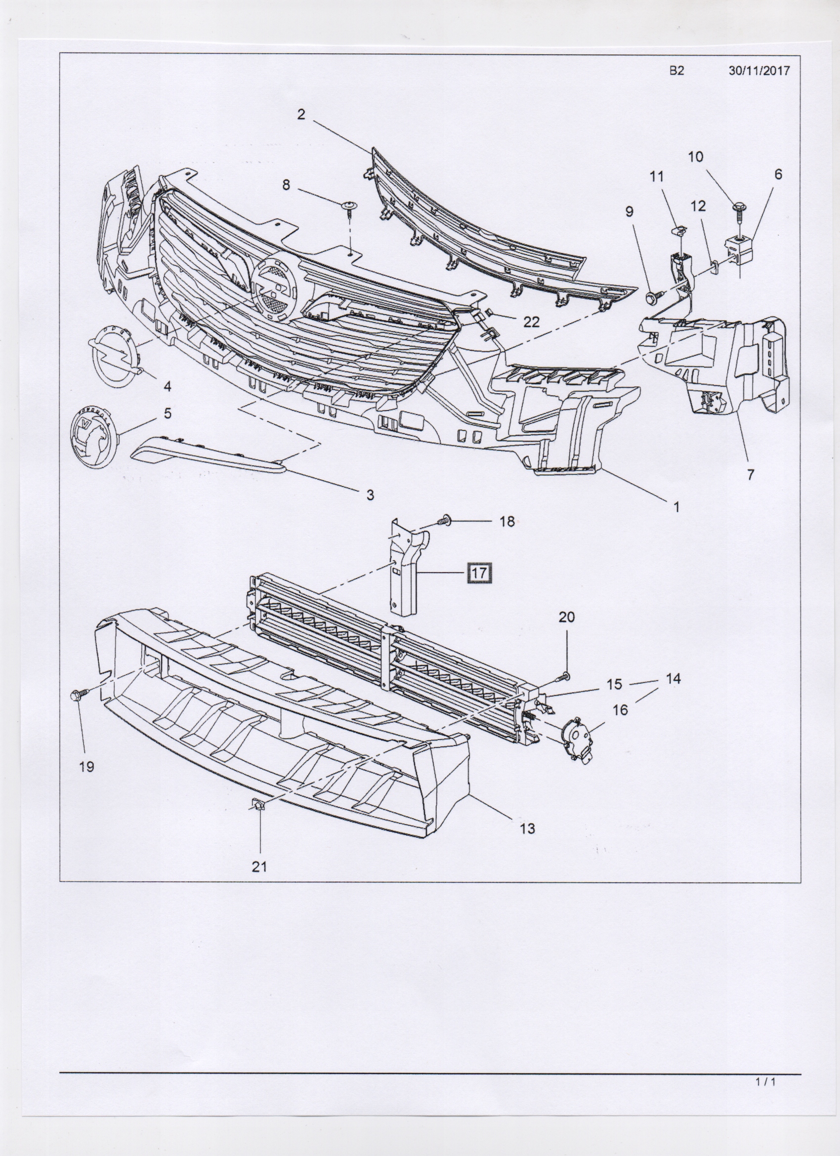 Crossland x направляющая корпус жалюзи бампера передний nowa gm 13486231