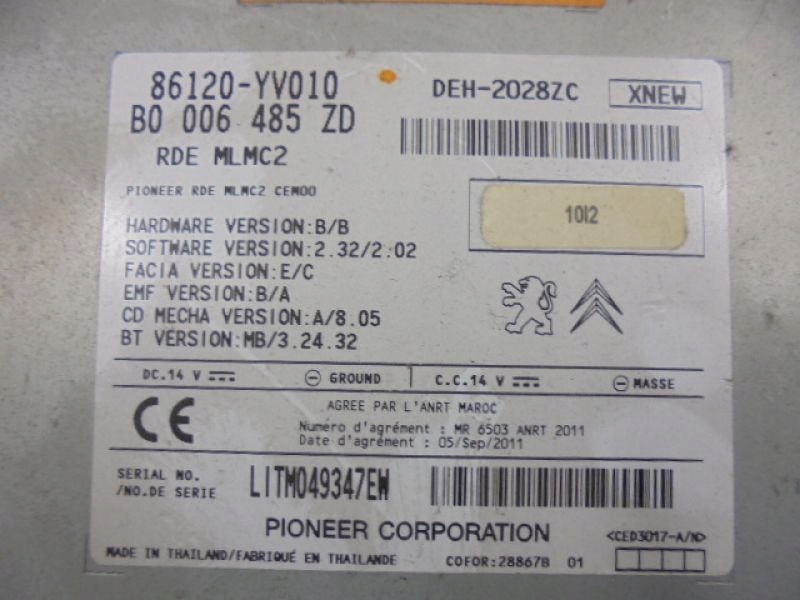 Peugeot 107 aygo радио mp3 bluetooth 86120-yv010