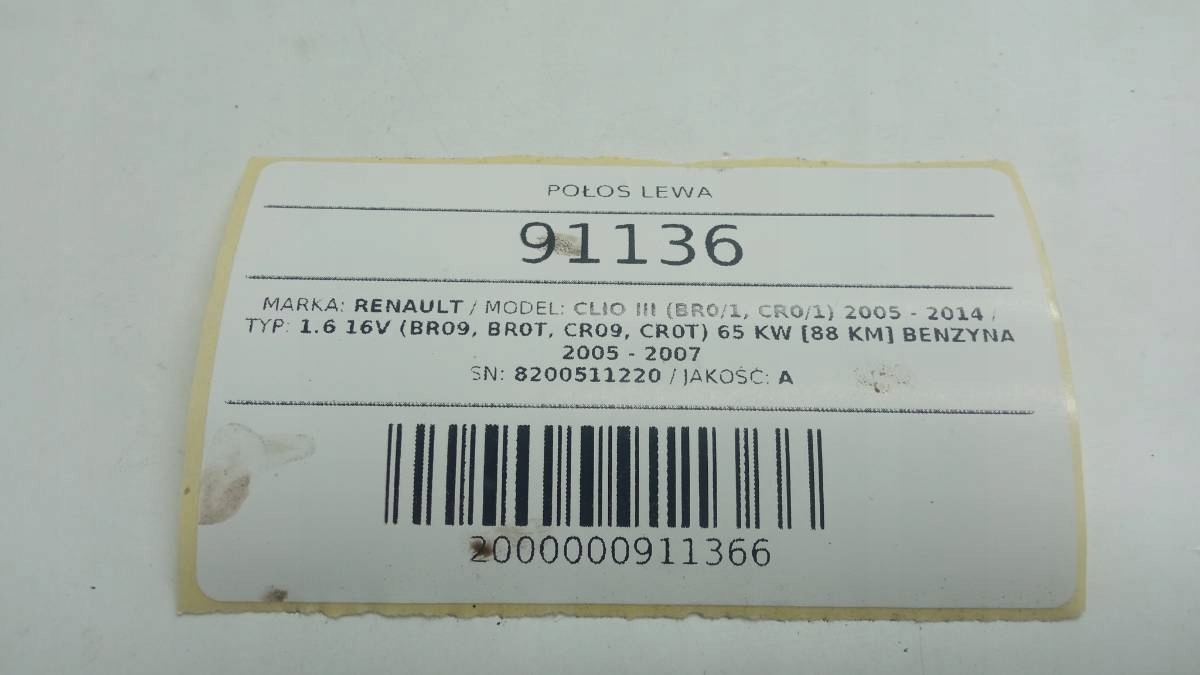 Приводной вал левая renault clio iii 1.6 b 8200511220