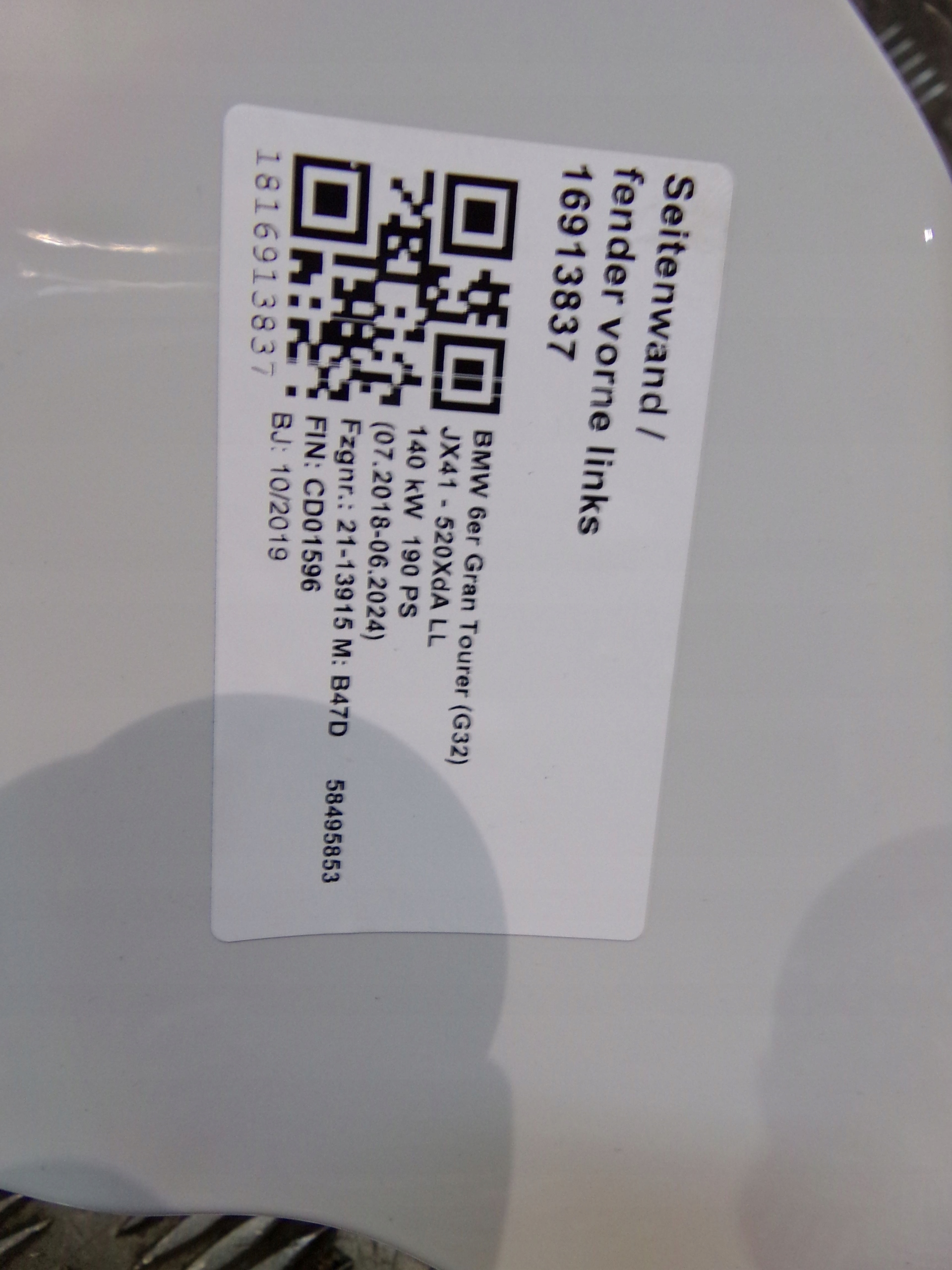 Есть ли гарантия на Bmw g32 левый крыло панель alpinweiss?