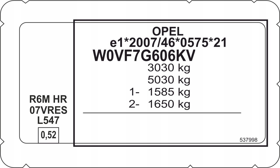 Табличка идентификационная opel наклейка идентификационная