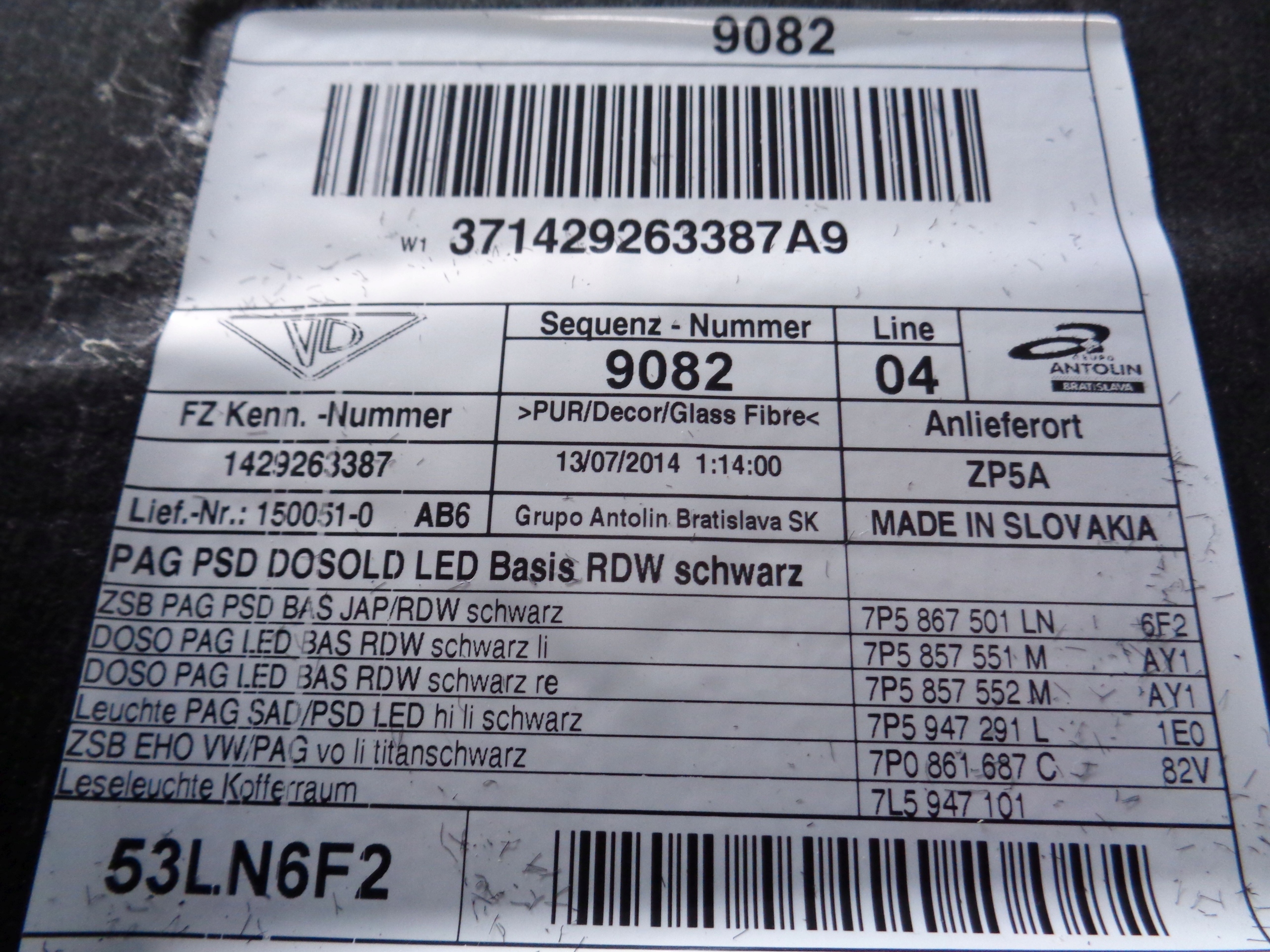 Оригинальный каталожный номер: 7P5867501, ALCANTARA