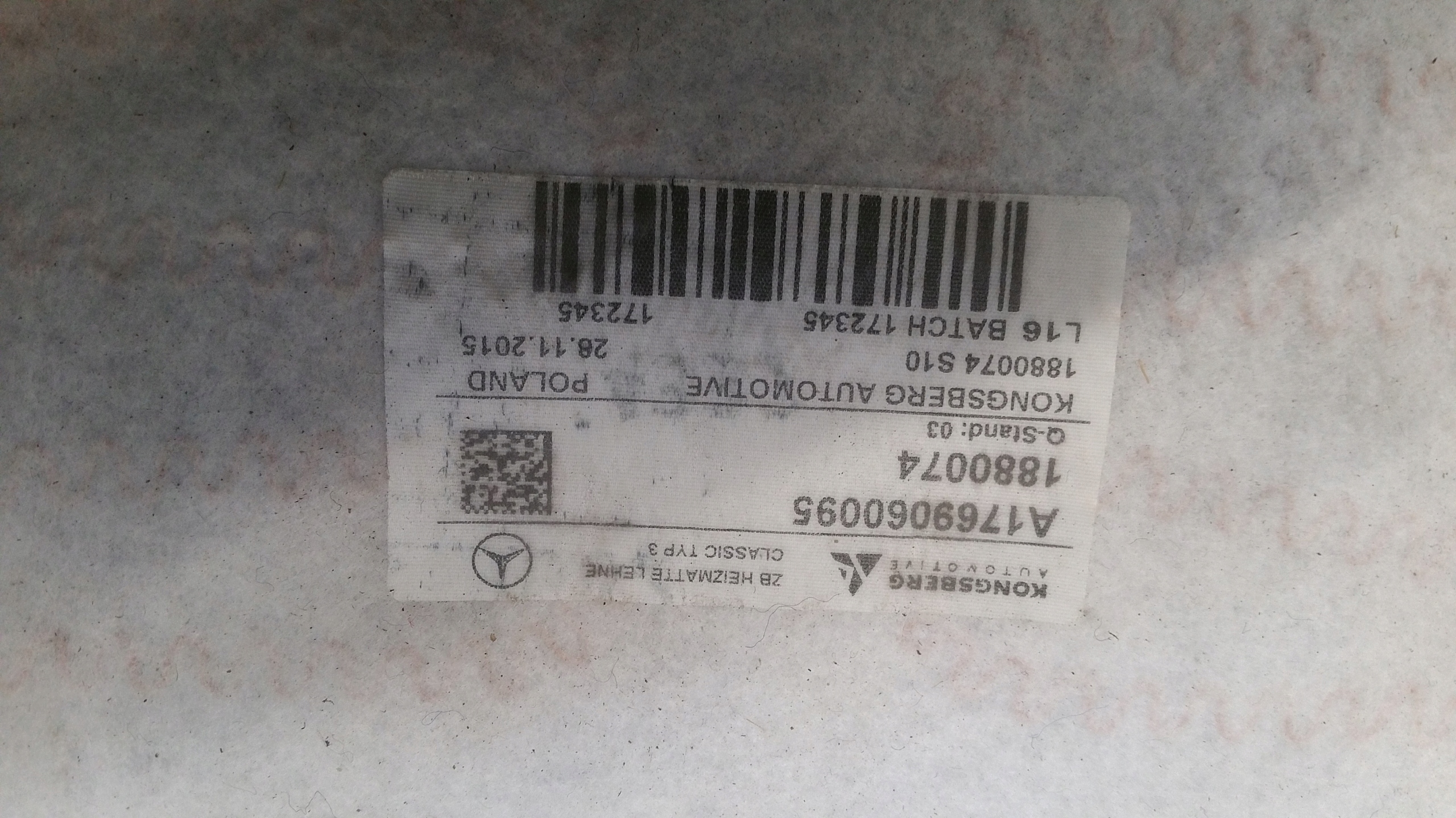 | Каталожный номер детали: | Poszycie, fotela, mercedes |