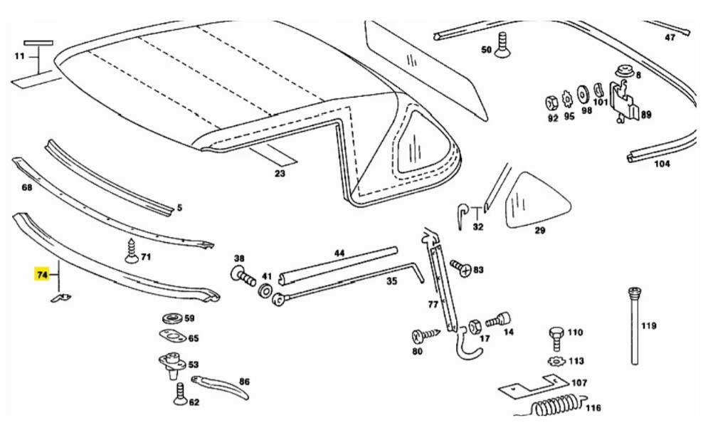 Верхний прокладка рамы крыша mercedes r107