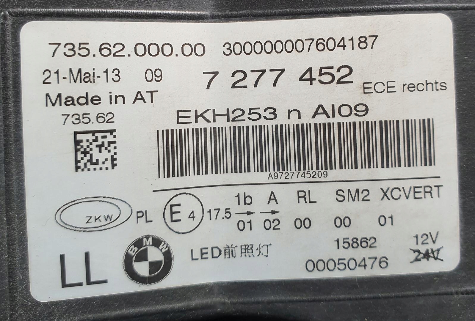 Лампа правая перед full led bmw x6 e71 7277452 euro