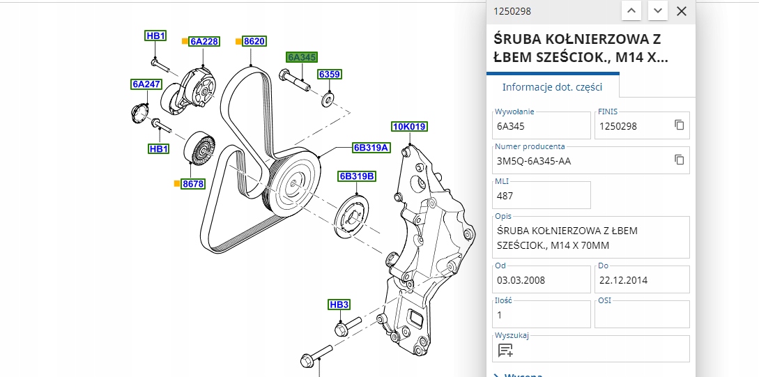 Как проверить совместимость Болт колеса шкивный вала коленчатого 14x70 ford 2,0d с моим авто?